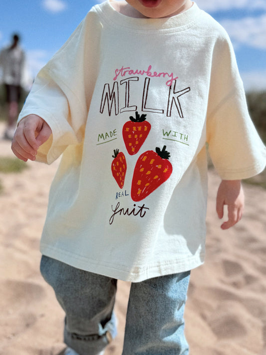 Oversized Children's Graphic T-shirt | Strawberry Milk