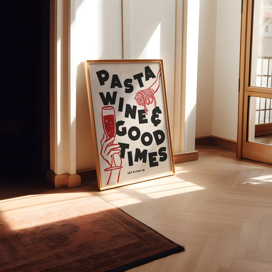 Pasta Wine & Good Times | Retro Food Poster | UNFRAMED