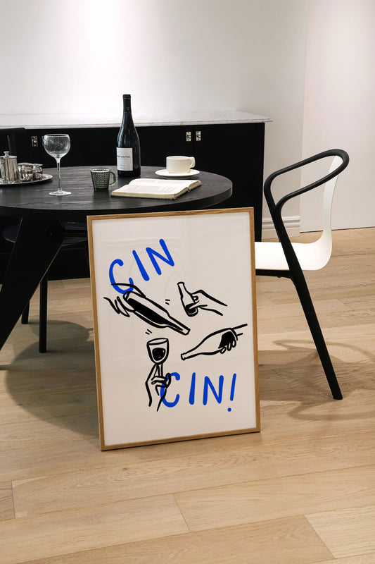 Cheers Cin Cin | Wine Glasses Poster | Blue | UNFRAMED