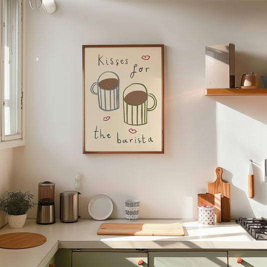 Kisses For The Barista | Coffee Print | UNFRAMED