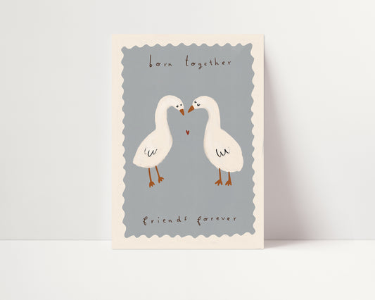 Twin Ducks | Twins Nursery Print | UNFRAMED