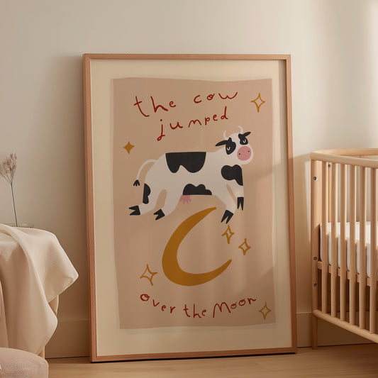 Cow Jumped Over The Moon | Nursery Rhyme Print | UNFRAMED
