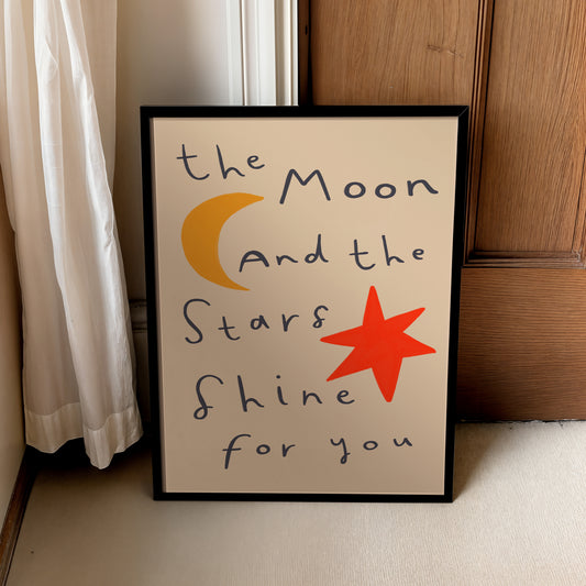 Moon and Stars Shine For You | Nursery Print | UNFRAMED
