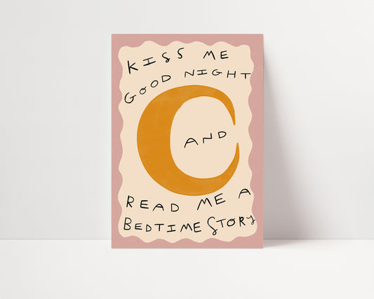 Kiss Me Good Night Bed Time Story Print | Nursery Moon Print | UNFRAMED