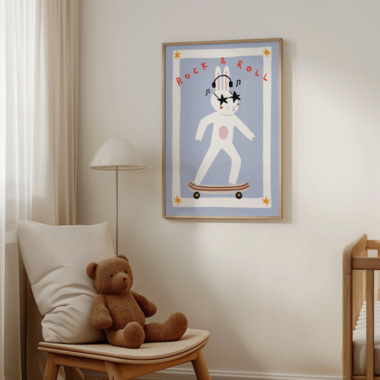 Rock & Roll Bunny | Nursery Print | UNFRAMED