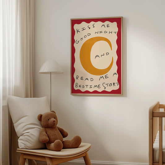 Kiss Me Good Night | Nursery Moon Print | UNFRAMED