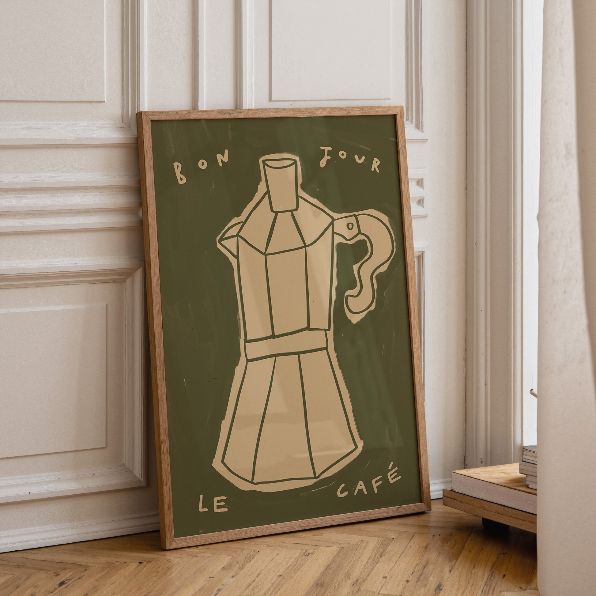 Bonjour Le Café | Hand Drawn Coffee Print | UNFRAMED