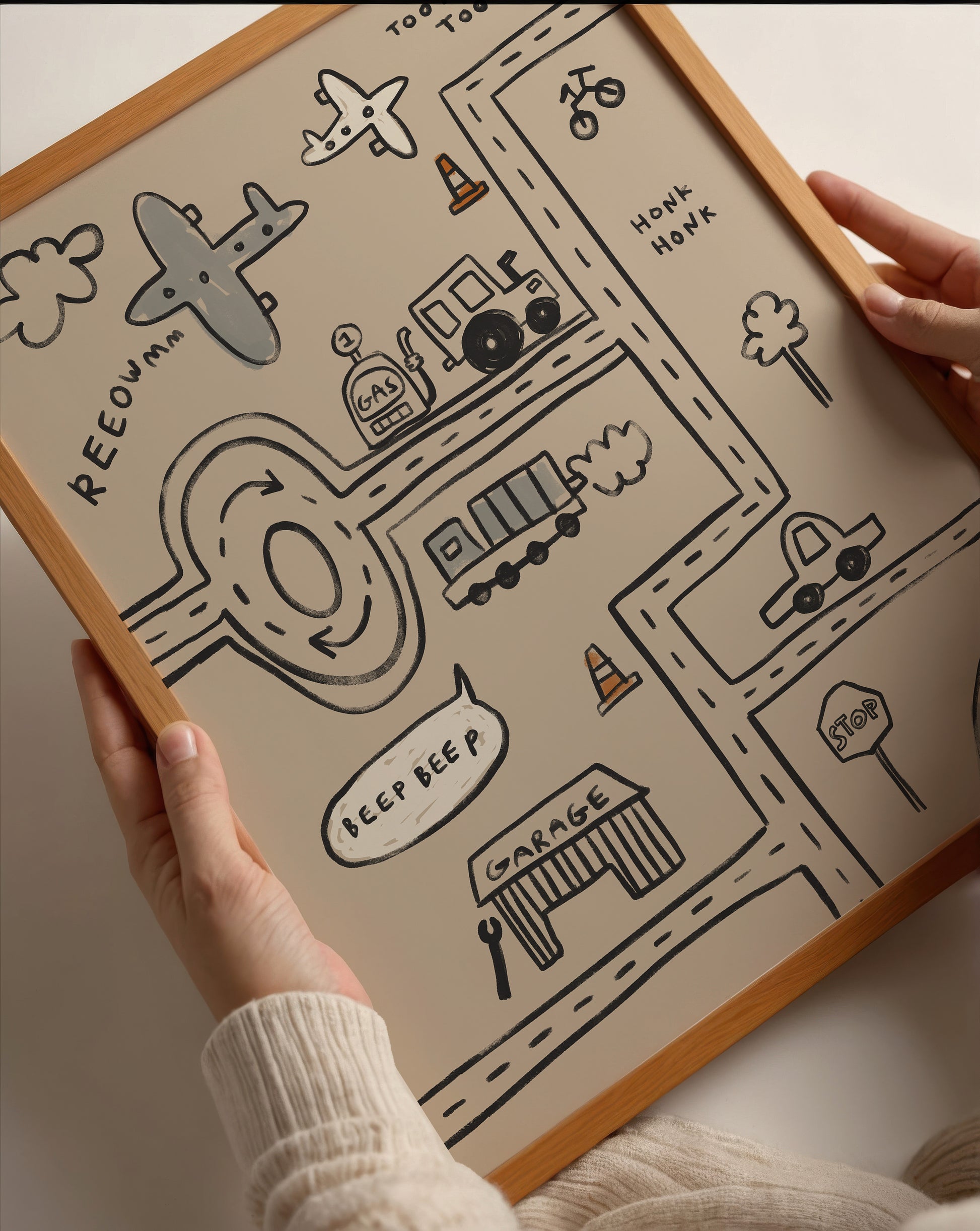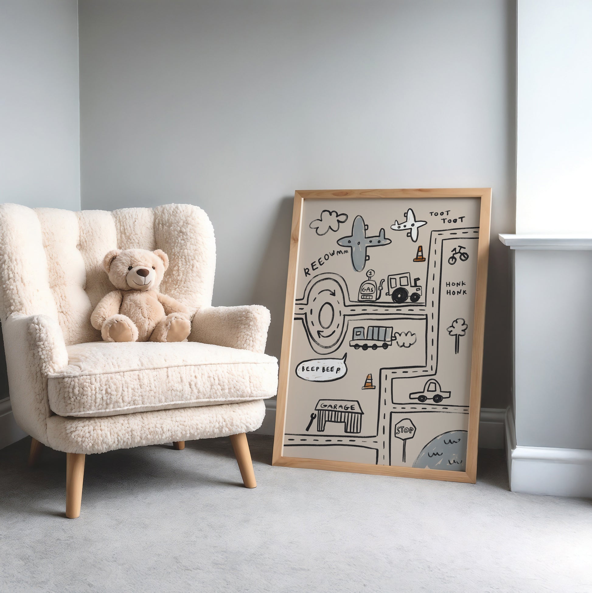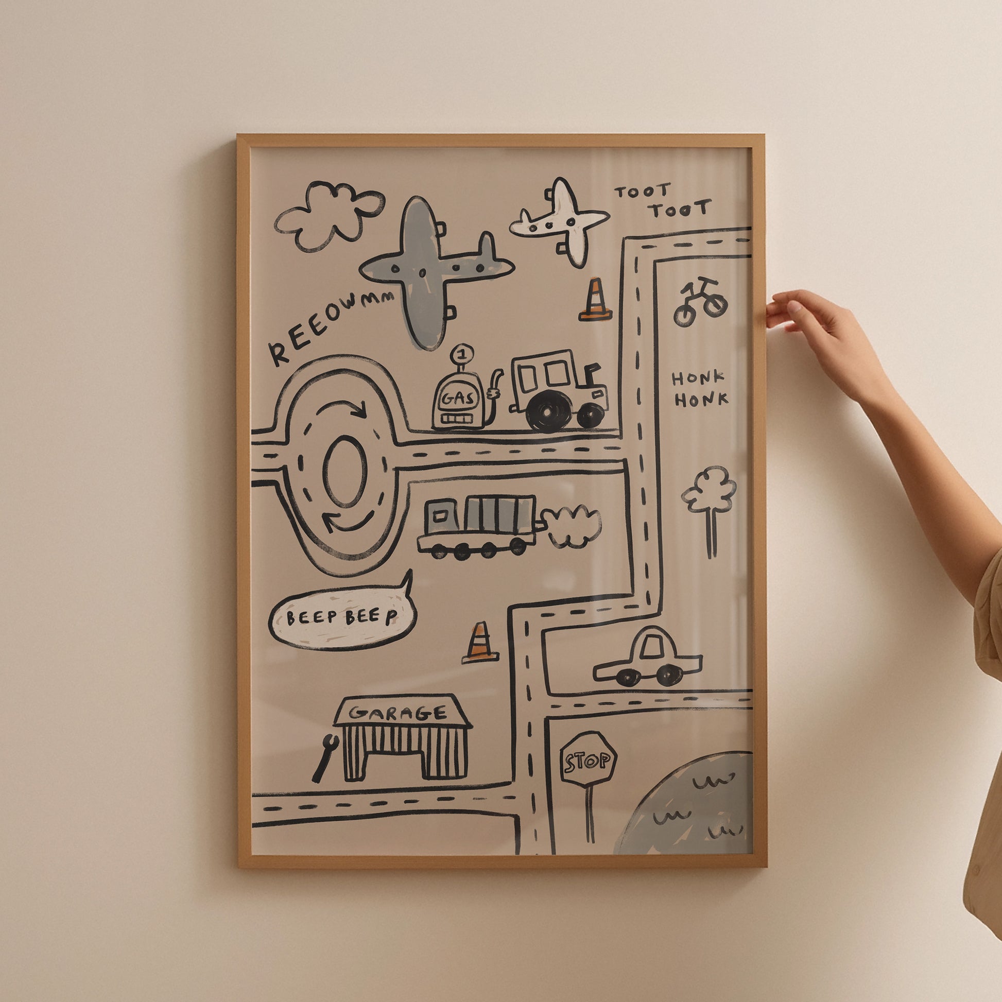 Cars and Planes Traffic | Nursery Transport Print | UNFRAMED
